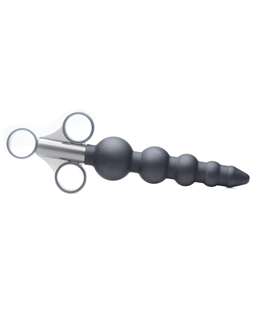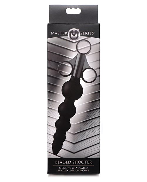 Master Series Beaded Shooter Silicone Graduated Beads Lube Launcher in Black will slide smoothly into your hole and fill you up with your favorite liquid. Precise lubricant application meets pleasure in this beaded lube launcher. The 4 bulbs gradually increase in size to prep you in more ways than one. Designed for one-handed ease of use, the convenient finger loops allow you to fill the applicator with whatever lube or liquid you want and inject with one simple thrust. The XL size holds over twice the amount of most launchers, so you can get the job done with less steps.