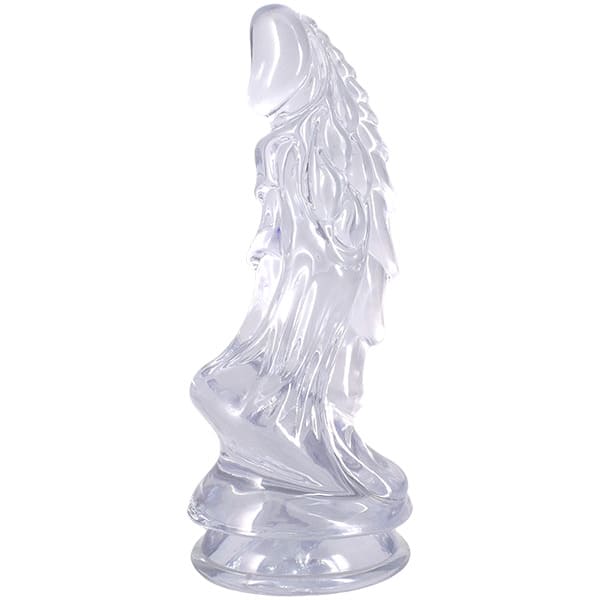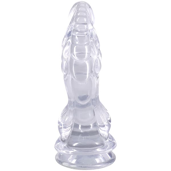 Crystal Jellies Invader 8.5 inch Dong in Clear from Doc Johnson features a fantasy phallic shape complete with stimulating ridges and rolls for out of this world stimulation. The sheer body-safe material is crystal clear and the wide base of this alien cock ensures safety during any kind of play. A built-in suction cup base seamlessly enables hands-free fun or can be used with an o-ring compatible harness. Made of phthalate-free, body-safe material.