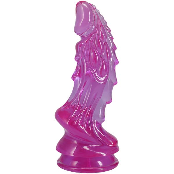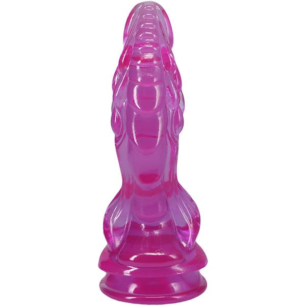 Crystal Jellies Invader 8.5 inch Dong in Purple from Doc Johnson features a fantasy phallic shape complete with stimulating ridges and rolls for out of this world stimulation. The sheer body-safe material is crystal clear and the wide base of this alien cock ensures safety during any kind of play. A built-in suction cup base seamlessly enables hands-free fun or can be used with an o-ring compatible harness. Made of phthalate-free, body-safe material.
