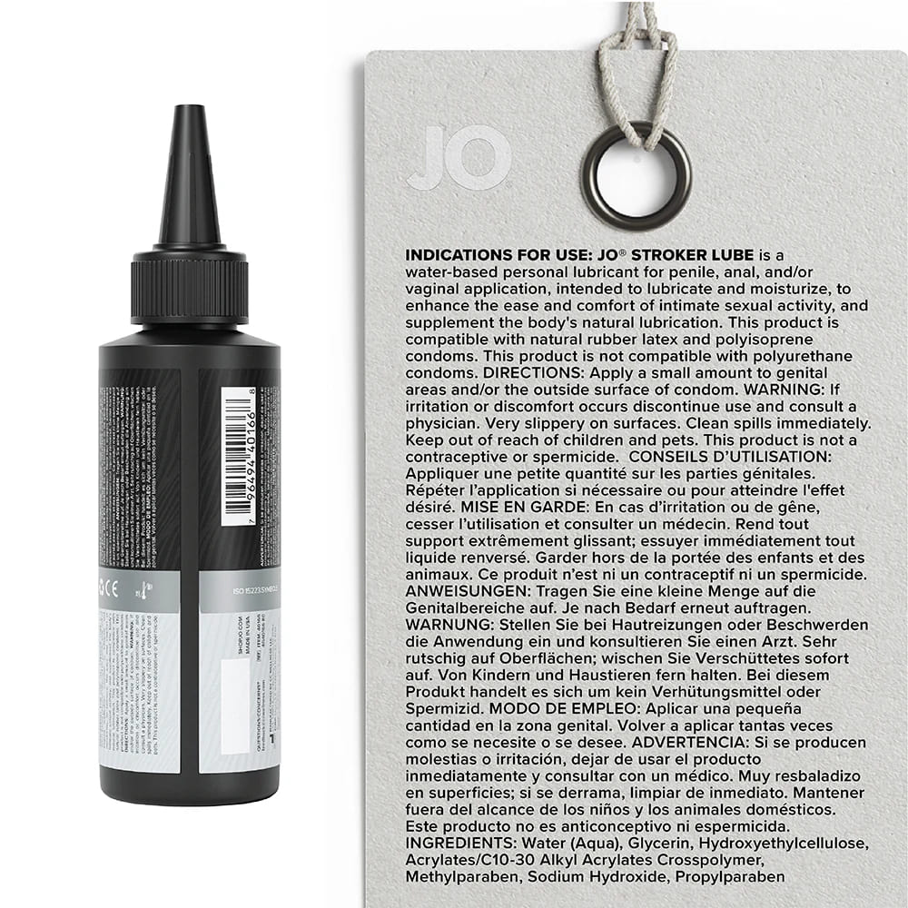 JO Stroker Water Based Personal Lubricant 8oz is the thickest, plushest water based formula, specially designed for strokers, sleeves, and penis-focused toys. With a dense, cushiony texture that stays exactly where you put it, this lube delivers friction-optimized glide and full-contact comfort without mess or drip. The precision-tip applicator ensures targeted, no-mess placement, perfect for tight channels and detailed play. Ideal for toy-enhanced pleasure, its silky-smooth feel elevates solo sessions with control and consistency. When the fun’s done, it rinses clean and leaves skin soft, never sticky. Contains 4 fluid ounces (120ml). Quality made in USA by System JO.