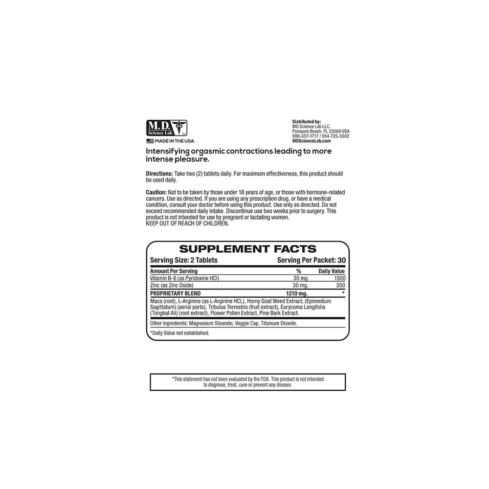 Bottle contains 60 maximum strength tablets. Use only as directed. Quality made in USA by MD Science Lab. Dietary Supplement Disclaimer.